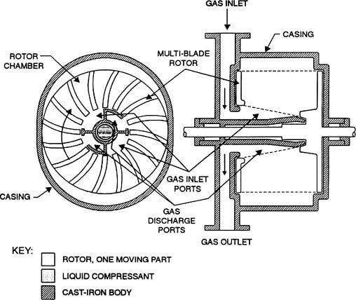 Vane compressor : The vanes on the rotor cling to the inner wall of the cylinder under the action of centrifugal force, forming a chamber with variable volume