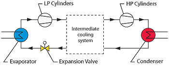 Reciprocating piston compressor : The piston reciprocates in the cylinder, completing the cycle through three stages: suction, compression, and exhaust.